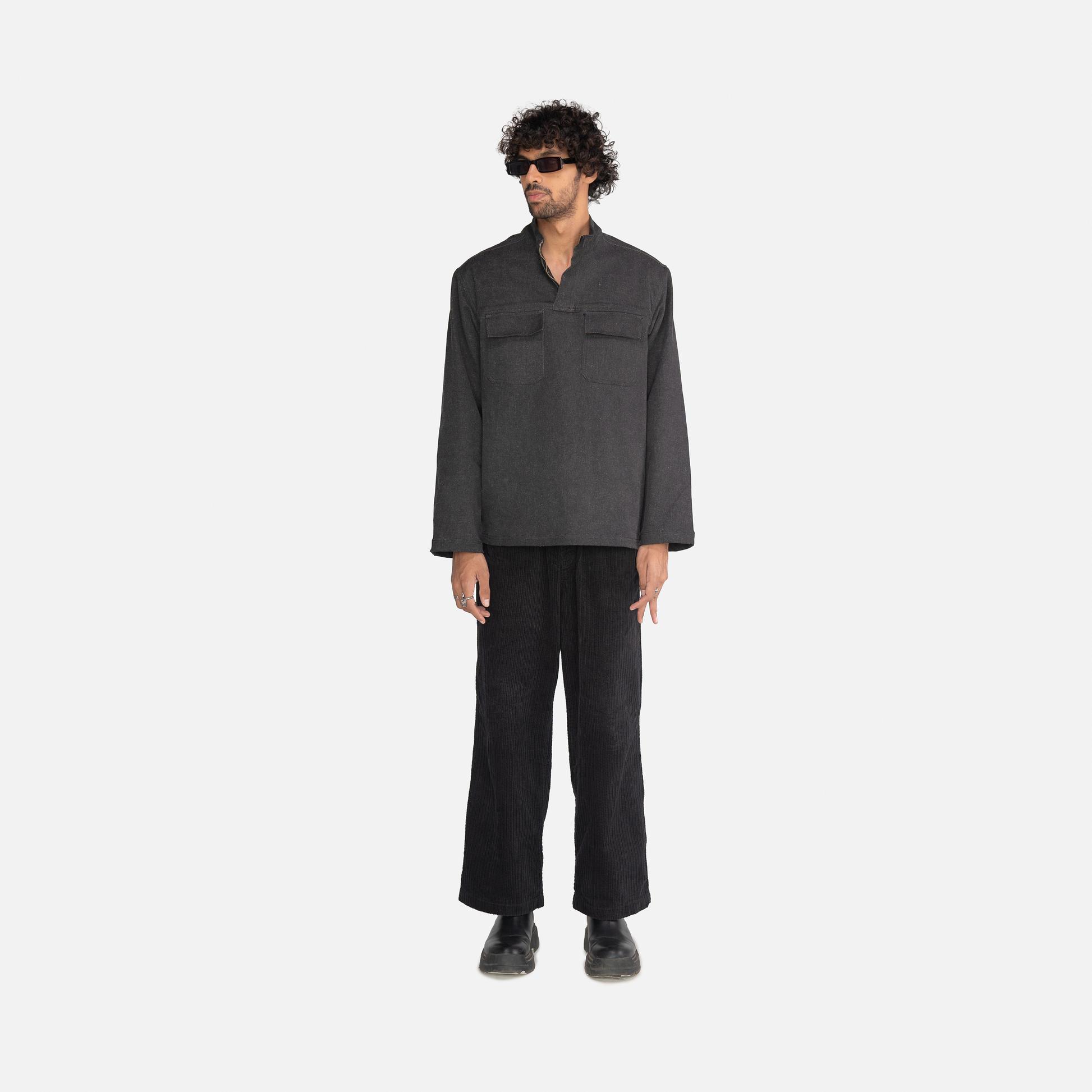 Elevate your wardrobe with this distinguished piece accentuated by a closed-collar.